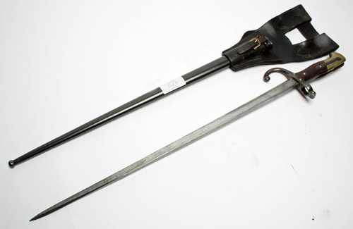 A BAYONET FOR THE GRAS RIFLE, French, dated for 1878, in good condition with its scabbard and leather frog