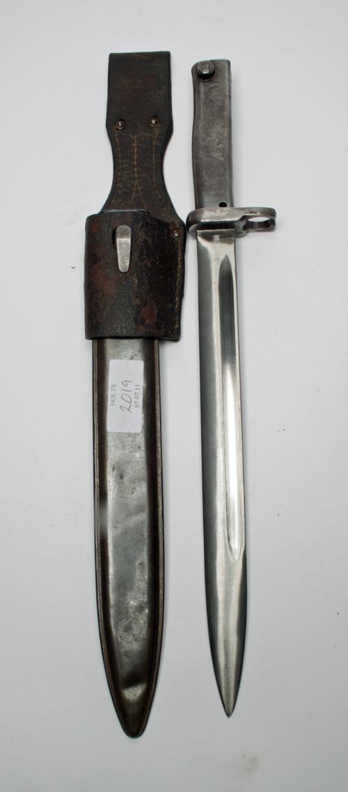 A WORLD WAR ONE GERMAN 'ERSATZ' BAYONET FOR THE MAUSER GEWEHR 98 RIFLE, blade cleaned, with its steel scabbard and leather frog