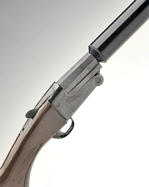 PEDRETTI .410 SINGLE-BARRELLED FOLDING SHOTGUN, serial no. 0198266, 28 1/2in. nitro barrel with full length sound moderator