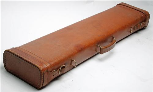 A DOUBLE ENDED TAN PIGSKIN GUNCASE, suitable for two sets of barrels, 28in & 30in., lined with red baize