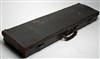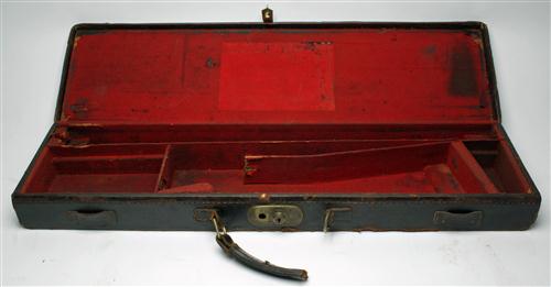 A SINGLE LEATHER GUNCASE, fitted for 30in. barrels, lined with red baize, brass lock (key missing), straps missing, handle needs attention, exterior lid with the monogram L.E.B.P.