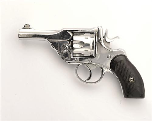 * A .38 (S&W) SIX-SHOT DOUBLE-ACTION POCKET REVOLVER SIGNED 'P. WEBLEY & SON', MODEL 'MKIII POCKET', serial no. 2837, circa 1900, with 3in. barrel, fluted cylinder, frame-mounted firing-pin, hard-rubber chequered grips, the whole re-finished in chrome-plate