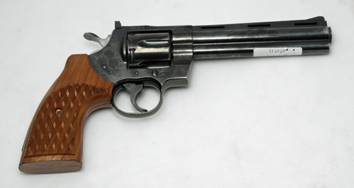 ** A .357 (MAG) SIX-SHOT DOUBLE-ACTION REVOLVER SIGNED 'COLT' MODEL 'PYTHON', serial no. E42807 .for 1972, with 6in. barrel (proved 2011) ventilated top-rib, blued fluted cylinder and frame, replacement wood skip-chequered grips, light wear to finish