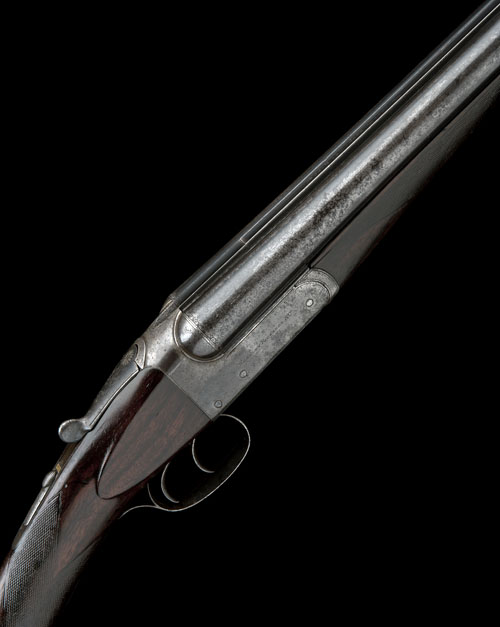 28in. nitro reproved barrels (in 2012), rib engraved 'WESTLEY RICHARDS & CO. LONDON.', 2 3/4in. chambers, bored approx. 1/4 and 3/4 choke, left wall thickness below recommended minimum, treble-grip action, Westley Richards patent toplever, automatic safety with gold-inlaid 'SAFE' detail, border engraving, light surface rusting, 14in. figured stock (bruised at butt) including horn buttplate, weight 5lb. 13oz., in a leather case with Westley Richards trade label