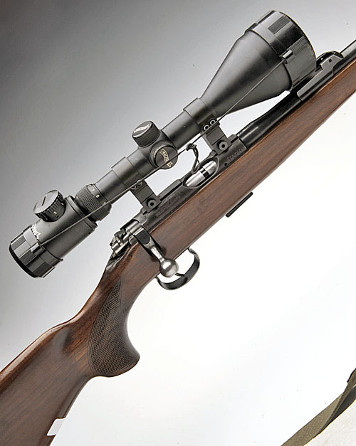 BRNO .22 (LR) BOLT-MAGAZINE SPORTING RIFLE, serial no. 372201, 18in. nitro barrel threaded for a sound moderator, fitted with a Walther 3-9x56 telescopic sight (illuminated reticule intensity switch at fault), canvas sling