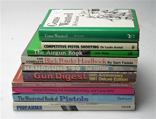 A SELECTION OF GUN RELATED BOOKS, including The Illustrated Encyclopedia od 19th Century Firearms, The American Gunmaker John M. Browning, The Illustrated Book Of Pistols, The Collectors Guide To Air Rifles, Firearms, 35th Anniversary 1881 Delux Edition Gun Digest, All New 2nd Edition Handguns '90, The Complete Black Powder Handbook, The Airgun Book, Competitive Pistol Shooting, Guns Wanted