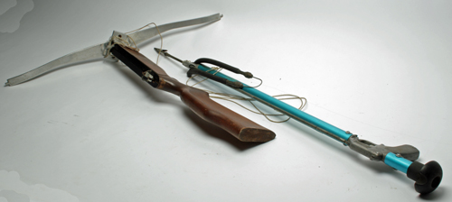 A TURNBULL SPEARGUN TOGETHER WITH A HOMEMADE CROSSBOW