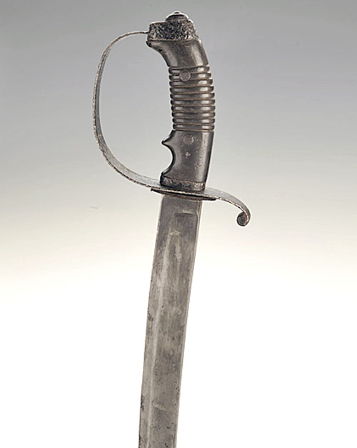 A COMPOSITE CONTINENTAL CAVALRY SABRE, the blade of an English 1796 light cavalry pattern, the grip from a Yugoslavian or German sword circa 1900 with an iron stirrup guard (heavily pitted), no scabbard