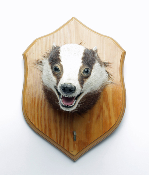A HEAD & CAPE MOUNT OF A BADGER, mounted on a wooden plaque Estimate £30-50