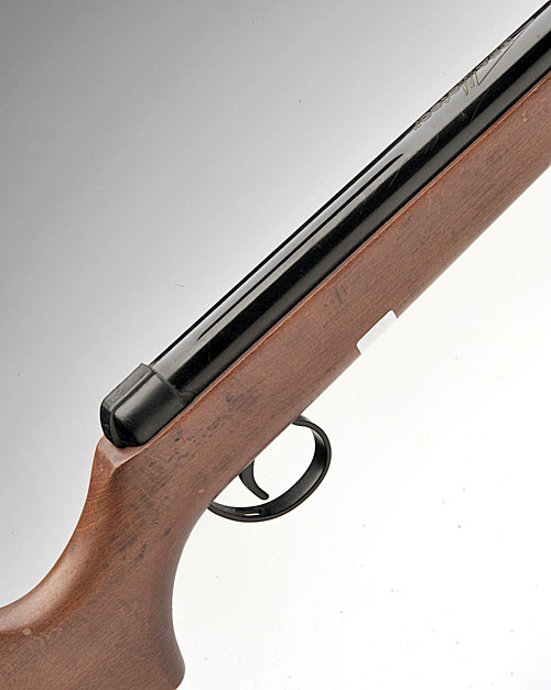 A .177 BREAK-BARREL AIR-RIFLE SIGNED BSA, MODEL 'METEOR MKII', serial no. ZB47490, circa 1965, with black enamelled finish, 18in. sighted barrel, arrow trademark to air-cylinder, grooved for telescopic sight, plain beech stock, retaining much original finish