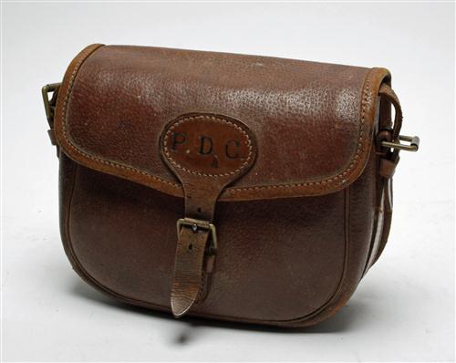 A BRADY LEATHER CARTRIDGE BAG (SMALL), with the monogram P.D.C. on the outer flap Estimate £20-30