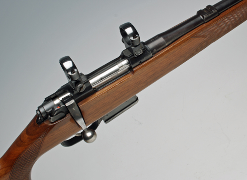 CZ .222REM. 'MOD 527 FS' STUTZEN BOLT-MAGAZINE SPORTING RIFLE, serial no. 66609, 20 1/2in. nitro barrel, missing open sights, receiver mounted with telescopic sight rings, full-length pistolgrip stock with cheekpiece, hogsback comb, sling swivels, 14 3/8in. pull including 1in. ventilated rubber recoil pad