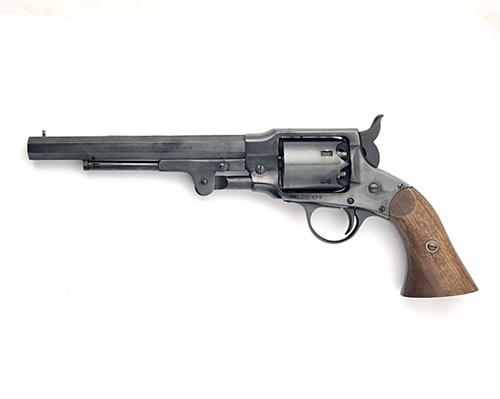 A REPRODUCTION .44 B/P PERCUSSION SIX-SHOT SINGLE-ACTION REVOLVER SIGNED EUROARMS, MODEL ROGERS & SPENCER, serial no. 125489, with blued 7 1/2in barrel, plain blued cylinder and smooth walnut grips, the whole appearing little used