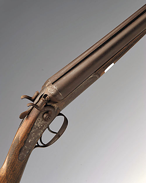 CHARLES LANCASTER 12-BORE (CROSSOVER) 'COLONIAL QUALITY' TOPLEVER HAMMERGUN, serial no. 6508, 30in. black powder barrels (pitted), the rib engraved 'CHARLES LANCASTER. 151 NEW BOND STREET. LONDON. COLONIAL QUALITY', 2 1/2in. chambers, bored approx. true cyl. and full choke, 14 1/2in. stock (right shoulder left eye) with diminutive leather-covered cheekpiece, including 1in. wooden extension, in a canvas and leather case (distressed)