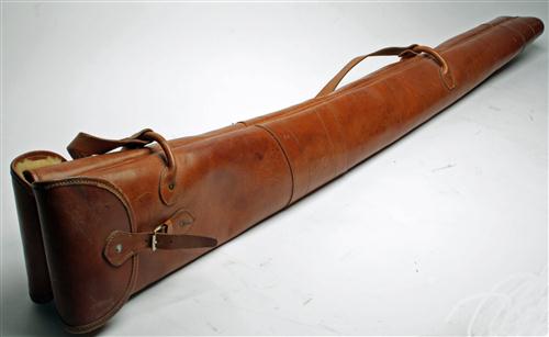 A TAN LEATHER FLEECE LINED DOUBLE GUNSLIP Estimate £150-250