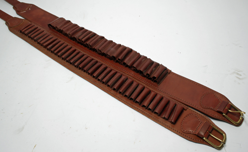 † TWO NEW & UNUSED LEATHER CARTRIDGE BELTS, including 1 x 12 bore double cartridge belt, 1 x 28 bore single leather cartridge belt