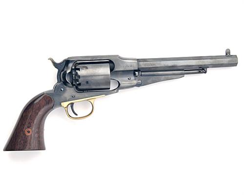 A REPRODUCTION .36 B/P PERCUSSION SIX-SHOT SINGLE-ACTION REVOLVER SIGNED UBERTI, MODEL REMINGTON ARMY, serial no. A56229, with 7 1/4in. blued barrel, plain cylinder and smooth walnut grips, the whole appearing little used