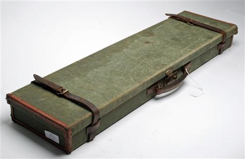 A BRADY GREEN CANVAS & LEATHER GUNCASE, fitted for 30in. barrels, lined with green baize, straps & handle in good order