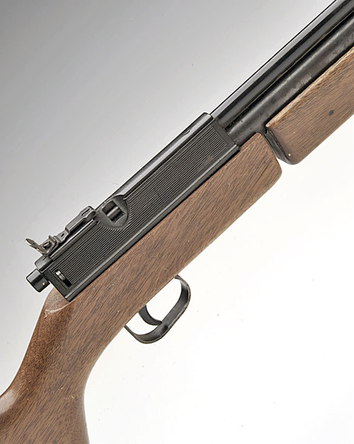 A .22 MULTI-PUMP PNEUMATIC AIR-RIFLE SIGNED SHARP' MODEL 'INNOVA', serial no. A361162, circa 1985, with shrouded 20in. barrel, plastic receiver housing, wood sock and pump grip, valves require service