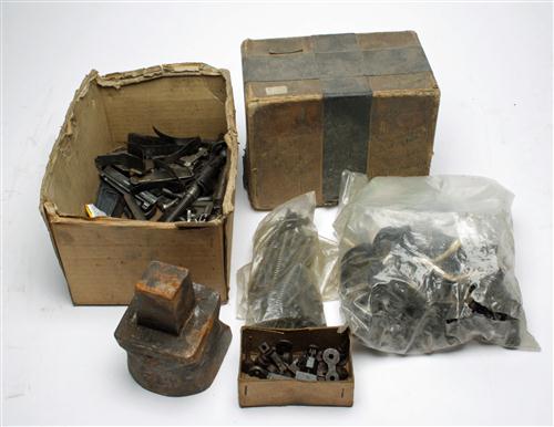 A BOX CONTAINING MAUSER 98 TRIGGERS, TRAYS, MAG SPRINGS, EJECTORS,