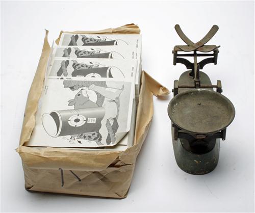 A SET OF WEIGHING SCALES together with a large quantity of air rifle targets Estimate £15-20