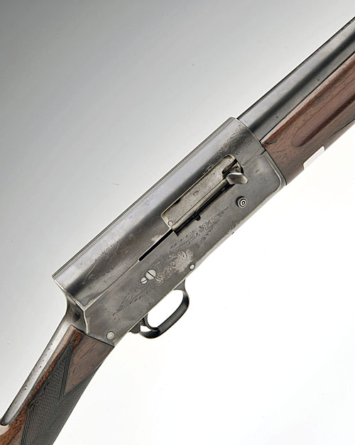 FN BROWNING 12-BORE 'AUTO-5' SEMI-AUTO SHOTGUN, serial no. 443087, 27 1/2in. nitro barrel, 2 3/4in. chamber, bored approx. 3/4 choke, blacked action with partial foliate scroll engraving