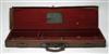 A SINGLE LEATHER GUNCASE, fitted for 30in. barrels, lined with maroon baize, brass lock (key missing), a faded Midland Gun Co trade label on the interior lid, this case is in need of attention