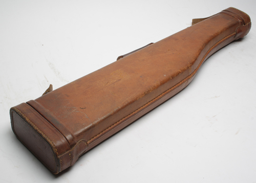 A TAN LEATHER DOUBLE ENDED LEG-OF-MUTTON GUNCASE, fitted for 30in. barrels, Estimate £60-80