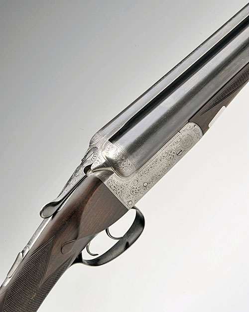 D.B. CROCKART 12-BORE BOXLOCK EJECTOR, serial no. 1555, 25in. nitro reproved barrels with Churchill rib (loose), 2 1/2in. chambers, bored approx. imp. cyl. and 1/4 choke, treble-grip action, automatic safety with silver-inlaid 'SAFE' detail, border and scroll engraving, brushed bright