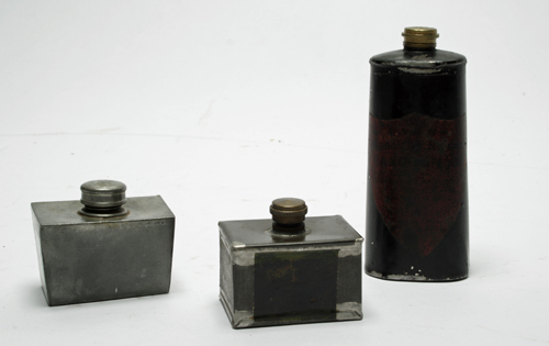 THREE VINTAGE OIL BOTTLES, a James Dixon oil bottle, a William Evans oil bottle, another vintage oil bottle
