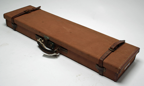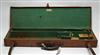A BRADY CANVAS & LEATHER SINGLE GUNCASE, fitted for 29in. barrels, lined with green baize, straps and handle good