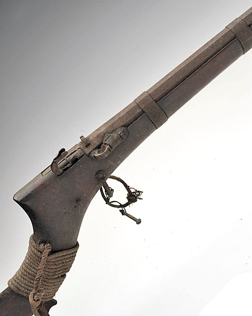 A 40-BORE PAKISTANI MATCHLOCK RIFLE, circa 1850, with octagonal 36in. barrel, 'Sind' style full-stock, iron surfaces corroded