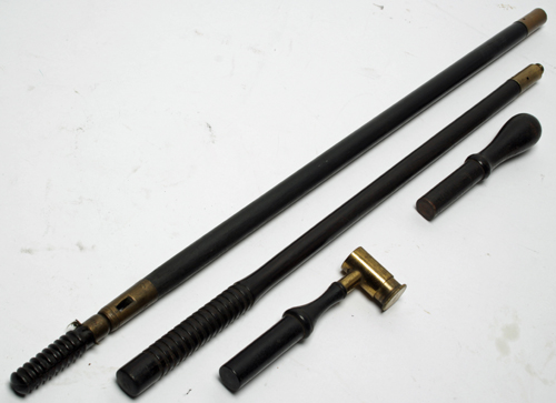 AN EBONY CLEANING ROD, together with a shot/powder measure & a 16-bore wad tamper Estimate £30-50