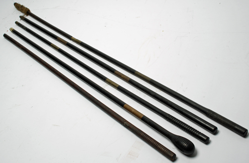 EBONY CLEANING RODS, two ebony cleaning rods together with three wooden cleaning rods Estimate £30-50