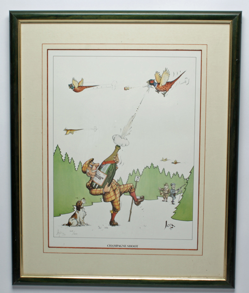 A FRAMED & GLAZED PRINT OF 'CHAMPAGNE SHOOT' limited edition 164 of 250 Estimate £20-30