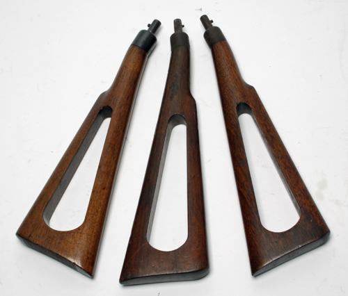 THREE WALKING STICK GUN SHOULDER STOCKS Estimate £30-50