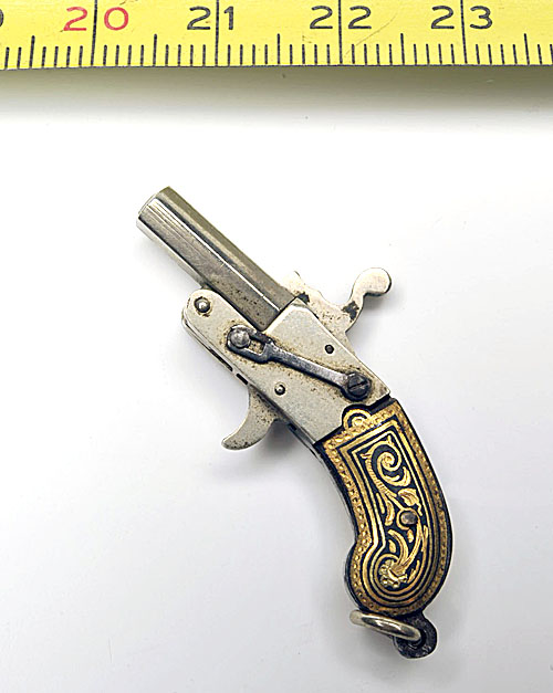 A 2mm (PINFIRE) SINGLE-SHOT 'KEY-RING' PISTOL WITH KOFTGARI GRIPS, SIGNED 'G & B', no visible serial number,