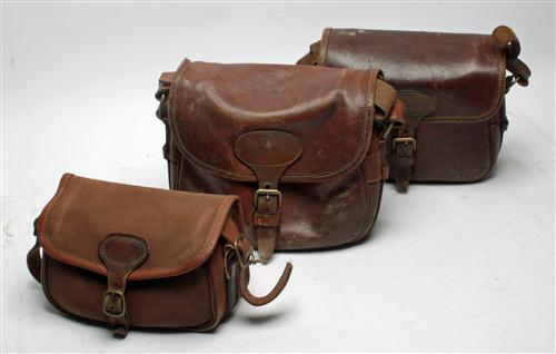 THREE CARTRIDGE BAGS, two leather medium cartridge bags, one canvas & leather cartridge bag.
