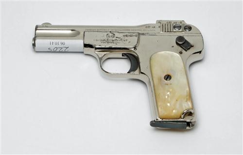 A DEACTIVATED .32 SEMI-AUTOMATIC PISTOL SIGNED FN, MODEL 'BROWNING 1900', serial no. 654567, in nickel-plated finish with mother of pearl grips, much finish remaining