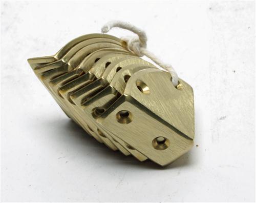 FOUR SET OF 8 SMALL BRASS GUNCASE CORNERS, approx. 1 x 1 1/2in., making 32 small brass. Estimate £70-75