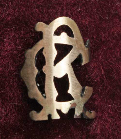 ROBERT CHURCHILL'S INTERTWINED 'RC' MONOGRAM IN GOLD, approx. 2cm x 1cm, in gold, once fitted into the stock of one of his personal shotguns