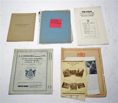 a) SHOOTING TIMES article dated April 26 1930 reporting on Robert Churchill's new shooting ground at Crayford in Kent.