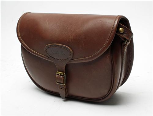 A LEATHER MEDIUM CARTRIDGE BAG with the monogram C.A.B. Estimate £30-50