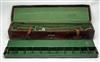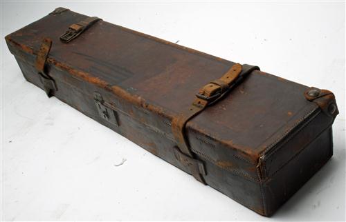 A SINGLE LEATHER GUNCASE, fitted for 30in. barrels, lined with green baize, metal ammunition lift out tray,lock missing.