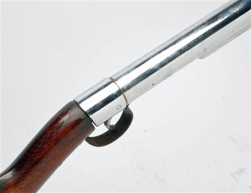 A .177 BREAK-BARREL AIR-RIFLE, UNSIGNED, MODEL 'PUSH BUTTON MILITIA', serial no. 58, circa 1930, with round, sighted, 17in. barrel, plain air chamber and walnut straight-hand stock, the whole re-nickel plated