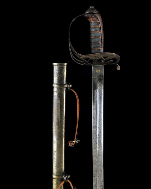 AN 1822 PATTERN BRITISH RIFLE OFFICERS SWORD, circa 1850, with Victorian crown and bugle device mounted in hilt; complete with scabbard (worn throughout)