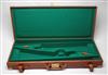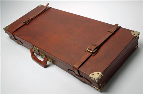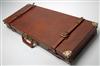 A BRASS-CORNERED PIGSKIN LEATHER DOUBLE GUNCASE