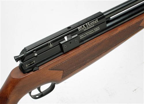 A .22 PRE-CHARGED PNEUMATIC MULTI-SHOT AIR-RIFLE SIGNED BSA, MODEL HORNET, serial no. 4B1481,