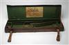 A BOSS & CO SINGLE LEATHER GUNCASE, fitted for 30in. barrels, lined with green baize, brass lock (key missing), the interior lid with a 'BOSS & CO' trade label, blocking needs attention.