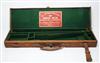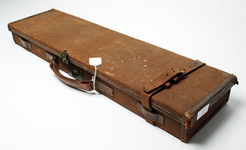 A CANVAS & LEATHER SINGLE GUNCASE, fitted for 28in. small bore barrels, lined in green baize, brass lock (key missing), the interior lid with a CHARLES HELLIS trade label, straps & handle in working order.